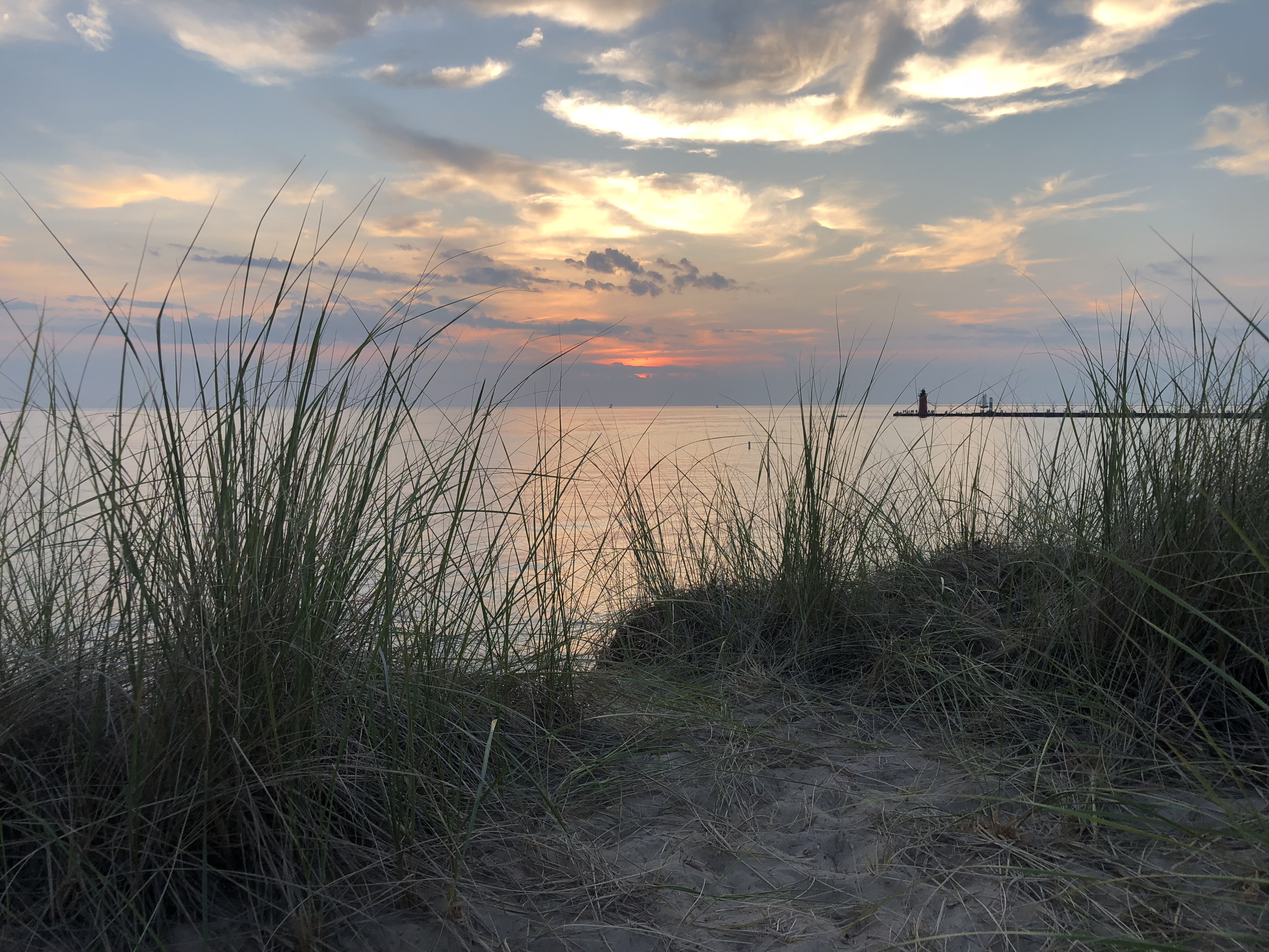- Watch a sunset over Lake Michigan. I mentioned before that there is NOTHING like a Lake Michigan sunset so, of course, this is at the top of my list. We sit above the beach on a waterproof beach blanket and watch the sunset over the lighthouse. It is so beautiful and so peaceful.